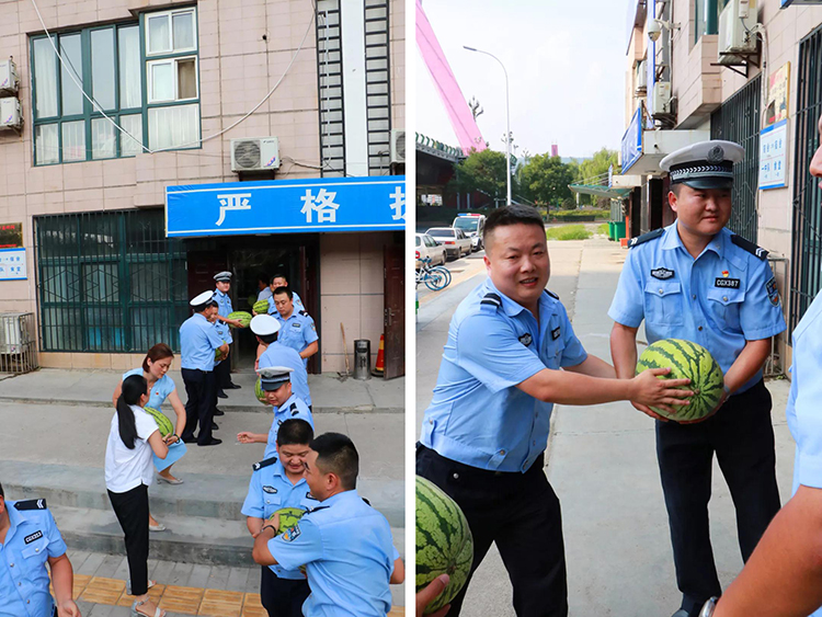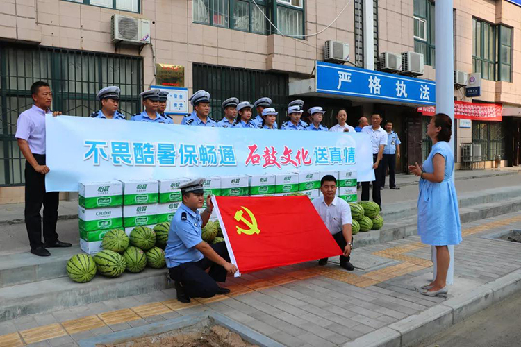 On August 6th, Likun, Secretary of the Shigu Culture Joint Party Branch, led the branch members and went to the Gaoxin Brigade of the Traffic Police Branch of the Baoji City Public Security Bureau and the Dongling Corridor Bridge to perform duties. The public security police on duty sent water, watermelons and other heat-proof cooling items to send them cool and caring for the summer. Deputy Captain Wangxinru and the captains also represent the frontline traffic police to thank the Shigu Culture United Party Branch for its understanding and support of the traffic police work.